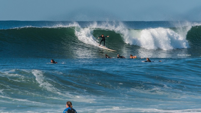 Las condiciones fueron mejorando, en algunos lugares la marea no ayudó obligándonos a buscar olas con el empuje necesario. Habíamos estado toda la mañana detrás del lente y era el momento de balancear la situación, así que luego de tomar alguna que otra foto como esta que tiene de protaginista a Tian Legnani, y otra con la principal protagonista del día, nos fuimos al agua y disfrutamos de aproximadmente una hora de excelentes condiciones.