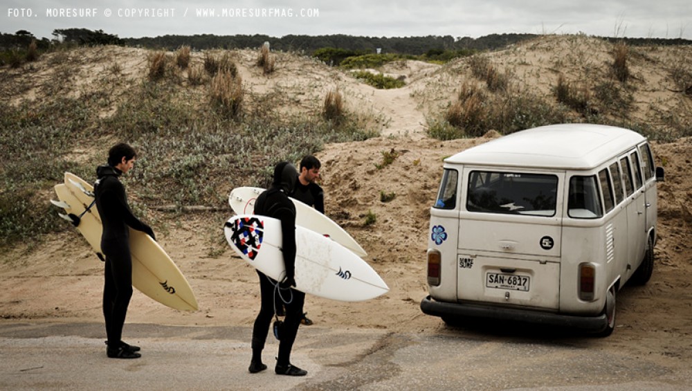 "Frío / 3 pibes / Una ola complicada" son unas cuantas imágenes de lo que fue el domingo al mediodía tras estacionar la Combi.