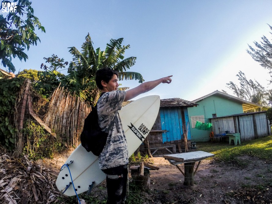 Por lo general en Praia do Rosa el poco viento que hay calma para el fin de tarde por lo que es casi seguro que el mar esté glaseado y porqué no con una olita mas que potable para entrar y hacer la última tirada antes de que se vaya el astro rey.